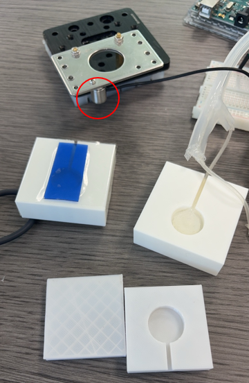 silicone chambers, and the assembled testing platform. These components together verify the system’s mechanical response