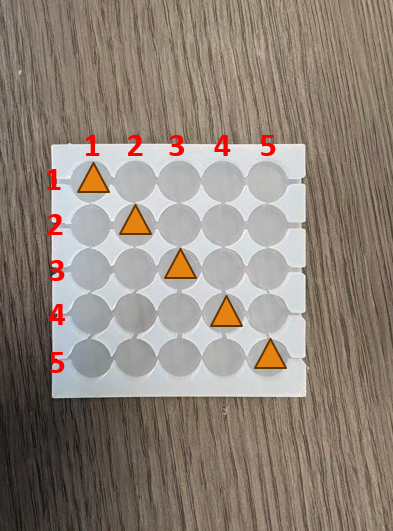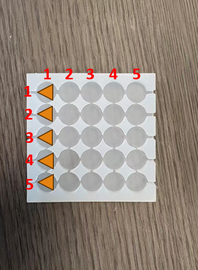 The first experiment aims to investigate how well different pneumatic units can be perceived at the MLA. The user study focuses on identifying the tactile two-point discrimination threshold, which indicates how closely two pneumatic stimuli can be placed while still being felt as separate sensations. To evaluate directional sensitivity, the pneumatic units are activated along horizontal, vertical, and diagonal orientations across the arch region. By examining perception across these directions, the experiment seeks to determine the spatial resolution limits of pneumatic feedback under the foot and to understand which chamber placements are most distinguishable for haptic rendering in future designs.